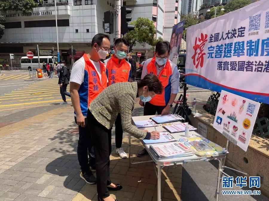 新華社香港3月15日電(記者劉明洋)連日來,“香港各界撐全國人大決定完善選舉制度連線”在全港各區擺設街站,收集市民支持全國人大決定的簽名。香港特區行政長官林鄭月娥15日前往位于港鐵堅尼地城站的街站簽名,支持落實“愛國者治港”原則,并為街站工作人員打氣加油。