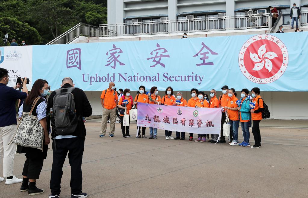 2021年4月15日,在香港警察學(xué)院,香港市民在全民國家安全教育日活動(dòng)上合影留念。新華社記者 李鋼 攝