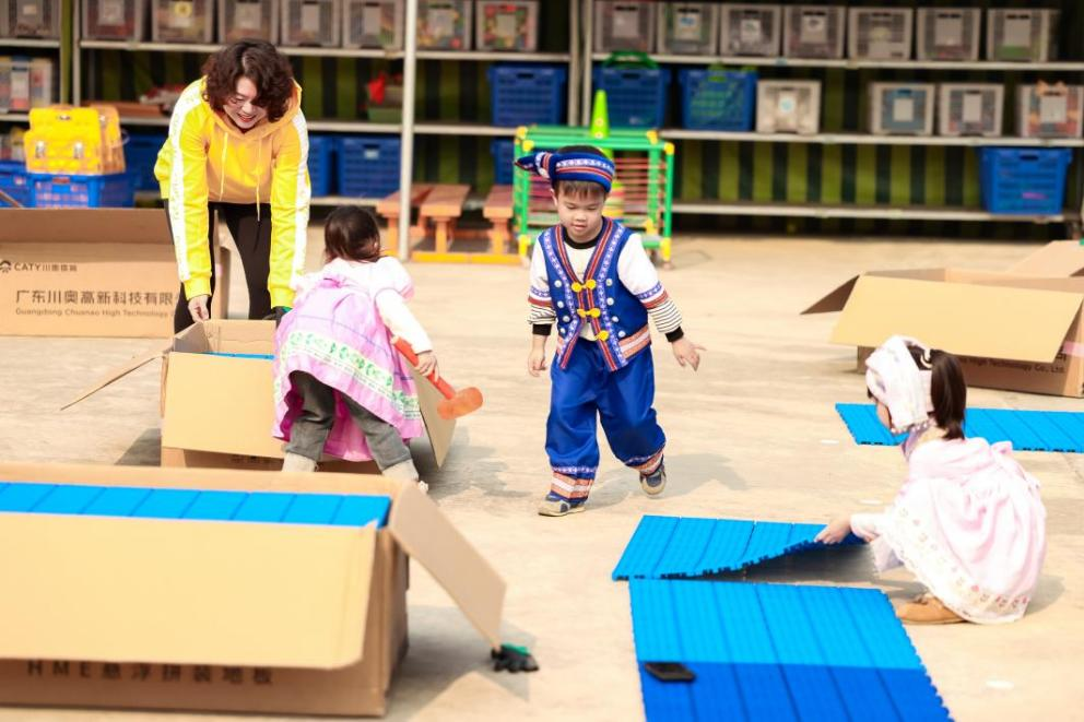 1月14日至15日,奈尔宝、美团与壹基金齐聚于广西壮族自治区崇左市大新县堪圩乡中心幼儿园,共同完成乡村儿童操场的铺设,与全园百余名儿童共度欢乐时光,让善意在乡间传递,让成长有了新舞台。