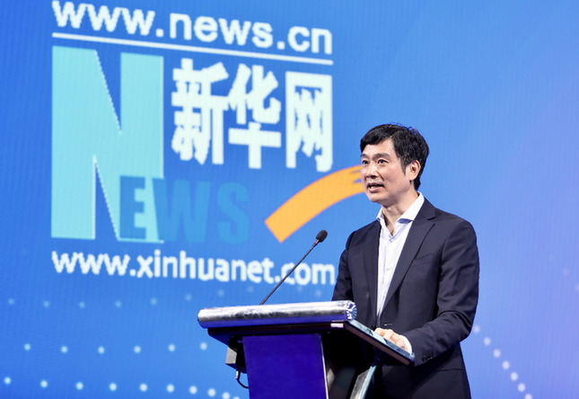 5月27日,巴彥淖爾市人民政府與新華網戰略合作簽約儀式在京舉行。圖為新華網黨委常委、副總裁申江嬰致辭。新華網 張 斌 攝