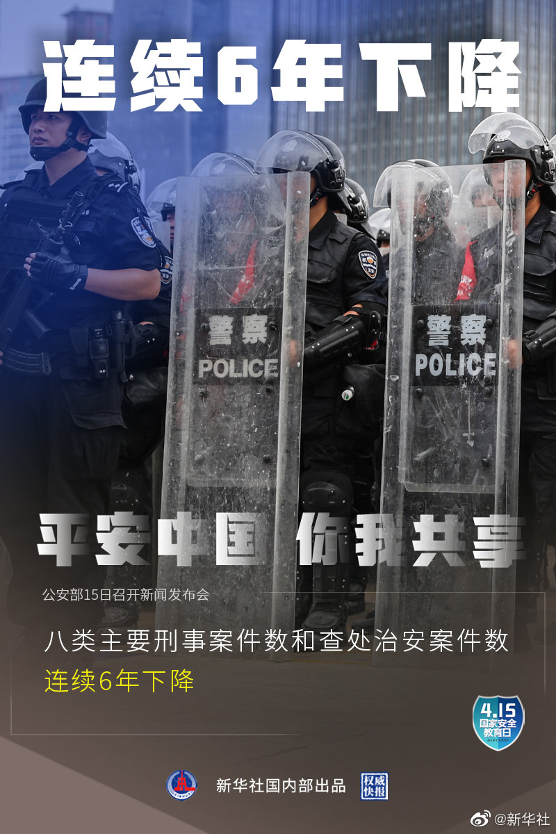 4月15日是第六個全民國家安全教育日,公安部15日召開新聞發(fā)布會介紹:2020年全國群眾安全感為98.4%,全國居民對社會治安滿意度達(dá)83.6%。截至2020年,全國刑事案件立案總量連續(xù)5年下降,八類主要刑事案件數(shù)和查處治安案件數(shù)連續(xù)6年下降。(記者熊豐,海報(bào)設(shè)計(jì)張晨光)