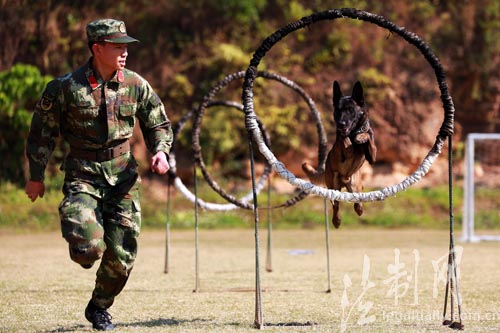 ????期間,這個支隊堅持從實戰出發,合理安排訓練內容,本著“貼近實戰”的原則,將基礎訓練與實用訓練相結合,科學運用誘導訓練法、機械刺激訓練法、結合訓練法等手段,重點突出警犬撲咬、追蹤、鑒別、搜爆、巡邏等應用課目的訓練。將傳統的訓練環境從室內拓展到野外、從比體能技能拓展到比心理智能,確保在反恐處突任務中能夠“跟蹤快、搜索準、撲咬狠”。同時,他們還注重加強訓導員與警犬的配合訓練,建立專犬專人負責制,全方位提高訓導員和警犬的信任度和協同作戰能力。