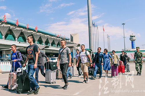 圖為新學員抵達烏魯木齊機場
