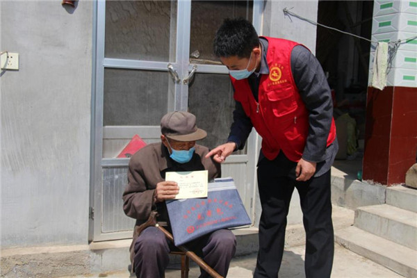 ????臨沂市蘭山區銀雀山街道梨杭社區退役軍人服務站工人員聶幫軍前往60周歲以上農村籍退役土兵崔友珂家中送達光榮單。李永臣 攝