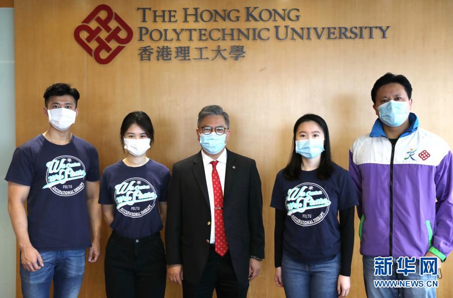這是“愛無疆”團隊成員合影。他們是(自左至右):香港理大康復(fù)治療科學(xué)系職業(yè)治療學(xué)三年級學(xué)生李穎東、香港理大康復(fù)治療科學(xué)系職業(yè)治療學(xué)四年級學(xué)生李舒平、香港理大康復(fù)治療科學(xué)系系主任曾永康、香港理大康復(fù)治療科學(xué)系職業(yè)治療學(xué)三年級學(xué)生梁熙童、香港理大康復(fù)治療科學(xué)系職業(yè)治療臨床導(dǎo)師鄧健聰(2020年12月12日攝)。新華社記者 吳曉初 攝