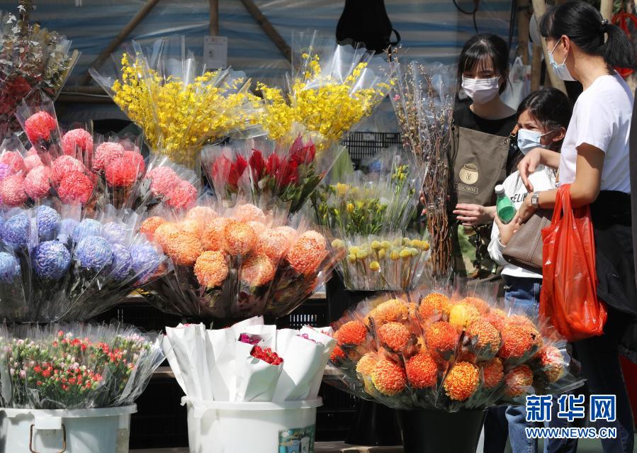 2月6日,市民在香港維多利亞公園的年花銷售點選購鮮花。新華社記者 李鋼 攝