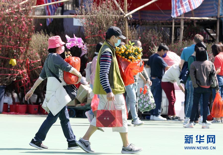 2月6日,市民在香港維多利亞公園的年花銷售點選購鮮花。新華社記者 李鋼 攝
