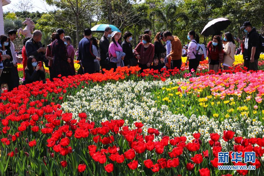 2月14日,游客在福建省廈門(mén)市園博苑賞花。新華社發(fā)(周道先 攝)