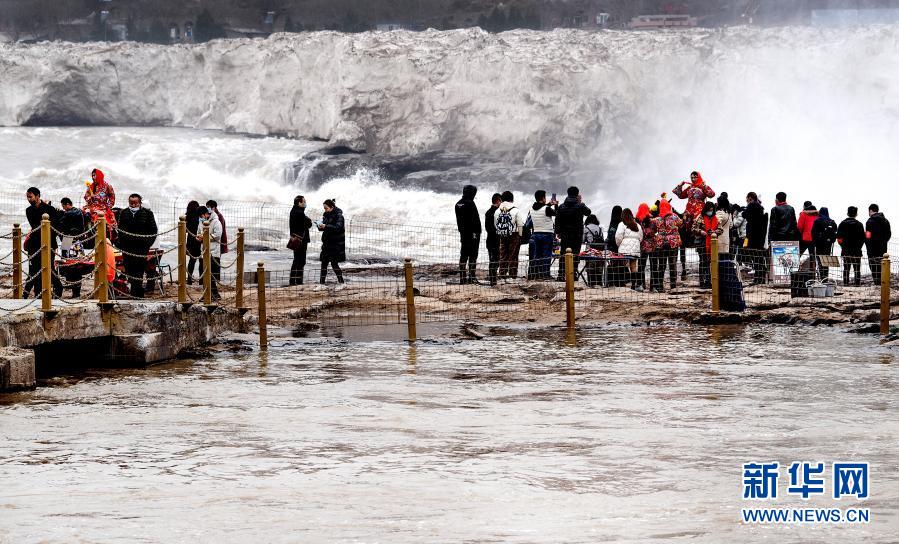 2月24日,游人在陜西壺口瀑布景區游覽。