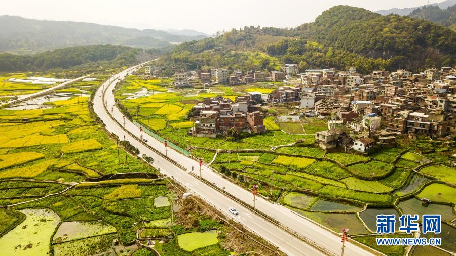 初春時節,位于貴州省黔東南苗族侗族自治州從江縣貫洞鎮附近的油菜花陸續盛開,宛若大地披金。古樸寧靜的村莊、四通八達的鄉村路、色彩斑斕的田野,構成春日里一幅幅美麗的鄉村畫卷。