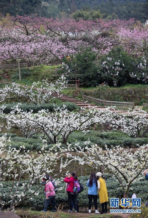 3月1日,游客徜徉在幸福古村的花叢中。新華社記者 江宏景 攝