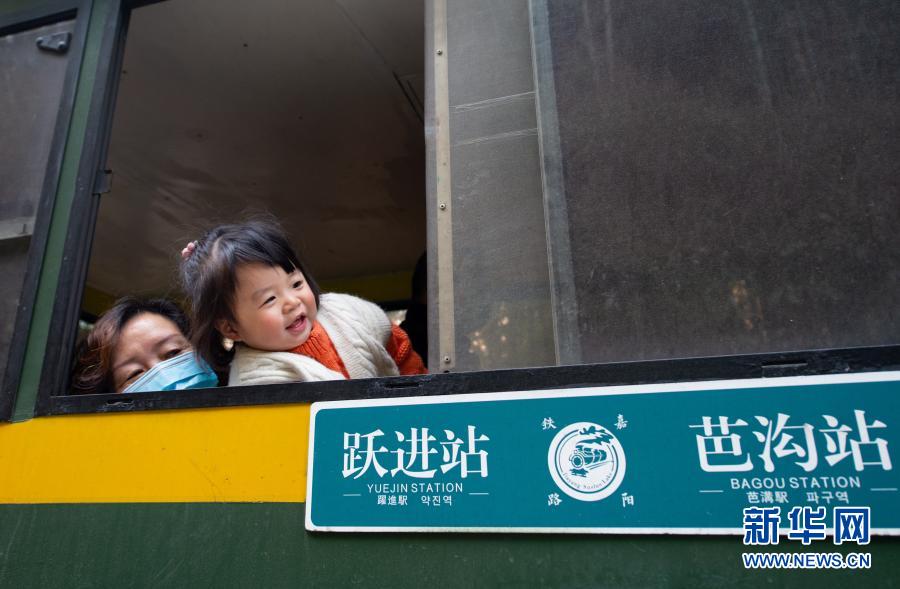 3月2日,游客在躍進站乘坐嘉陽小火車到芭溝站。