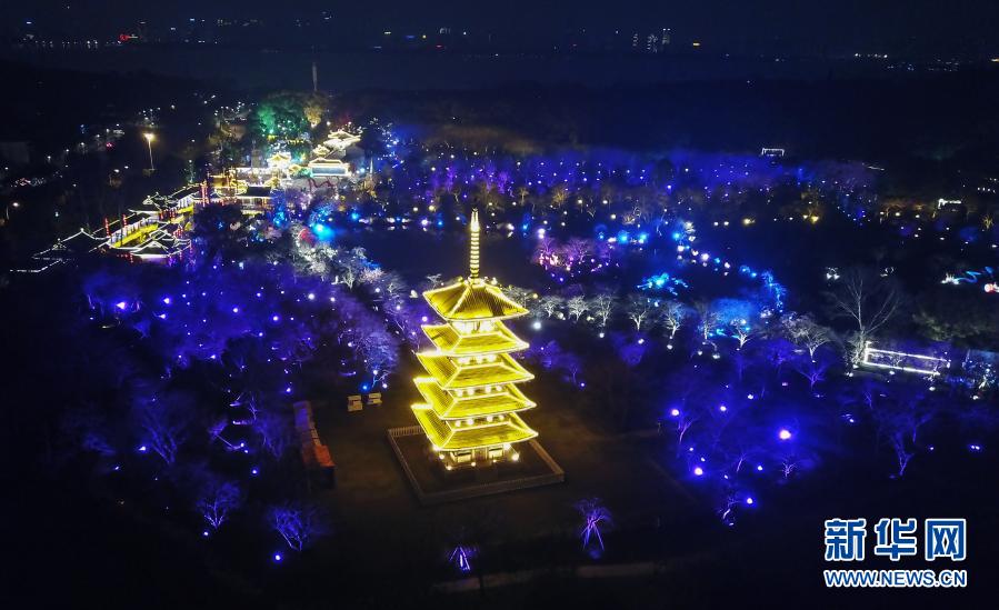 這是3月3日拍攝的武漢東湖櫻花園夜景。
