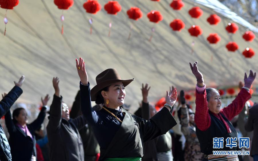 3月8日,人們?cè)诶_龍王潭公園跳舞。新華社記者 覺果 攝