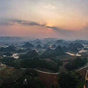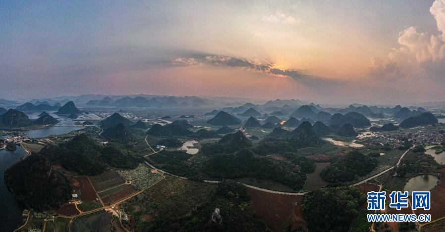 進入3月,地處云南省文山壯族苗族自治州丘北縣的普者黑國家濕地公園內層巒疊嶂,在光影交匯中盡顯秀美景色。