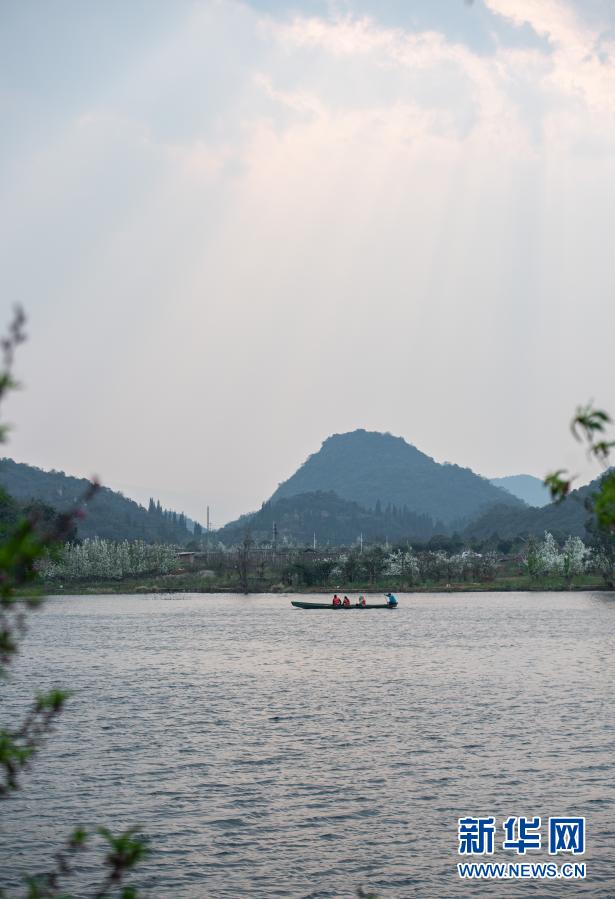 游人在普者黑國(guó)家濕地公園泛舟賞景(3月7日攝)。新華社記者 王冠森 攝