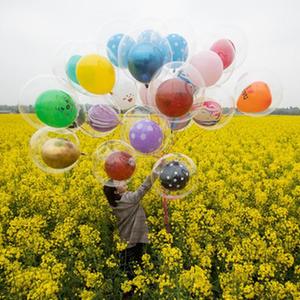 3月14日,游客在安州區秀水鎮龍泉村的油菜花海中留影。