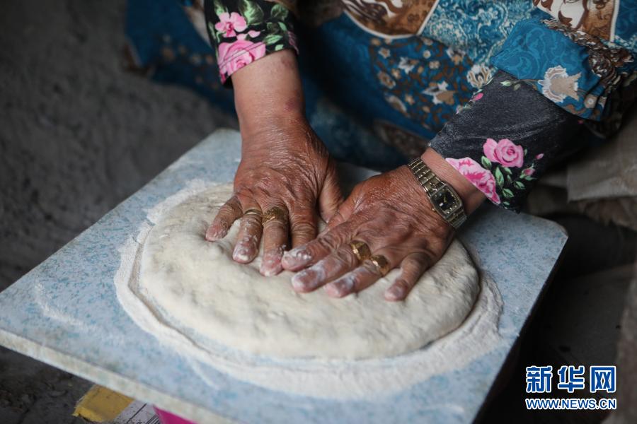 3月17日,70歲的卡茲蘭·阿布·卡巴什在約旦河西岸城市希伯倫附近的一個村莊制作“塔本”烤餅。