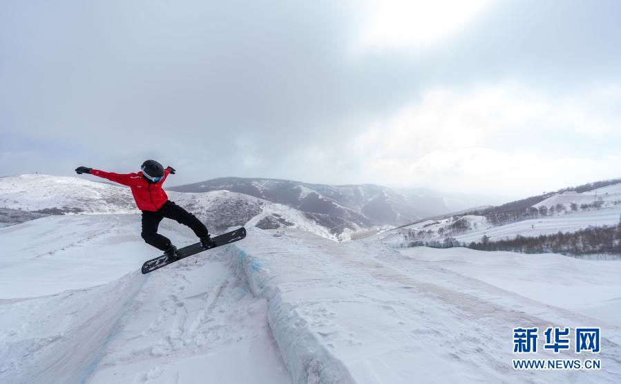 3月20日,冬殘奧會國家集訓隊單板滑雪運動員賀一朋在冬殘奧會訓練基地訓練。