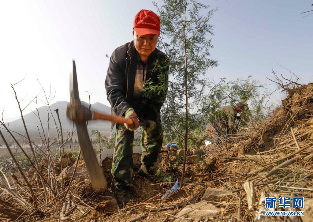 3月31日,造林隊員在河北省遵化市石門鎮金星山植樹。