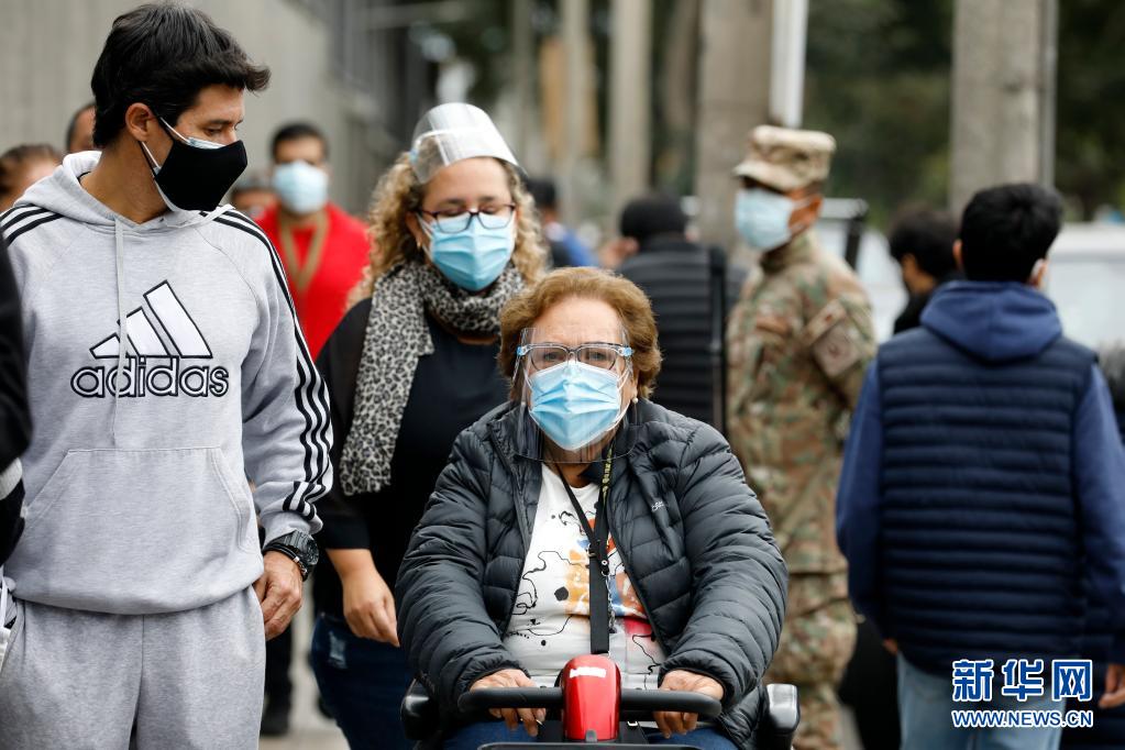 6月6日,在秘魯首都利馬,一名老人在家人陪伴下坐電動輪椅前往投票站投票。