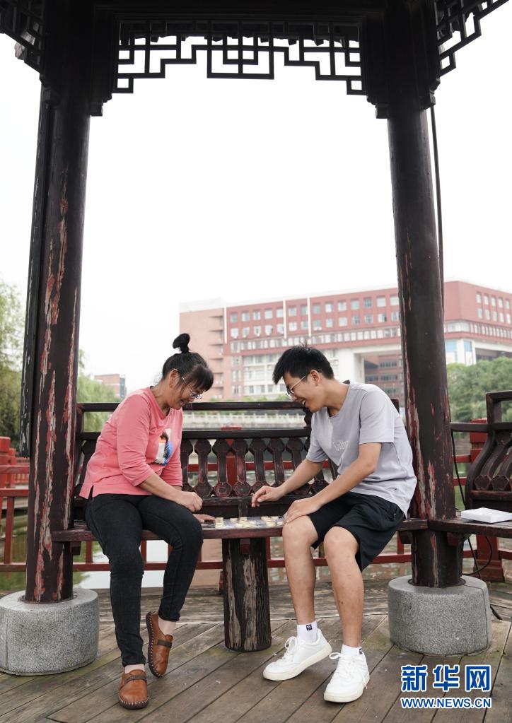 6月2日,趙建軍和母親一起在校園內下棋。新華社記者胡晨歡攝