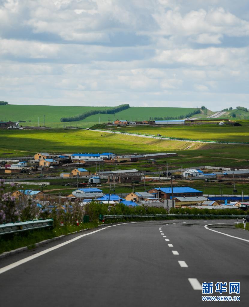 內蒙古呼倫貝爾332國道旁景色迷人(6月10日攝)。