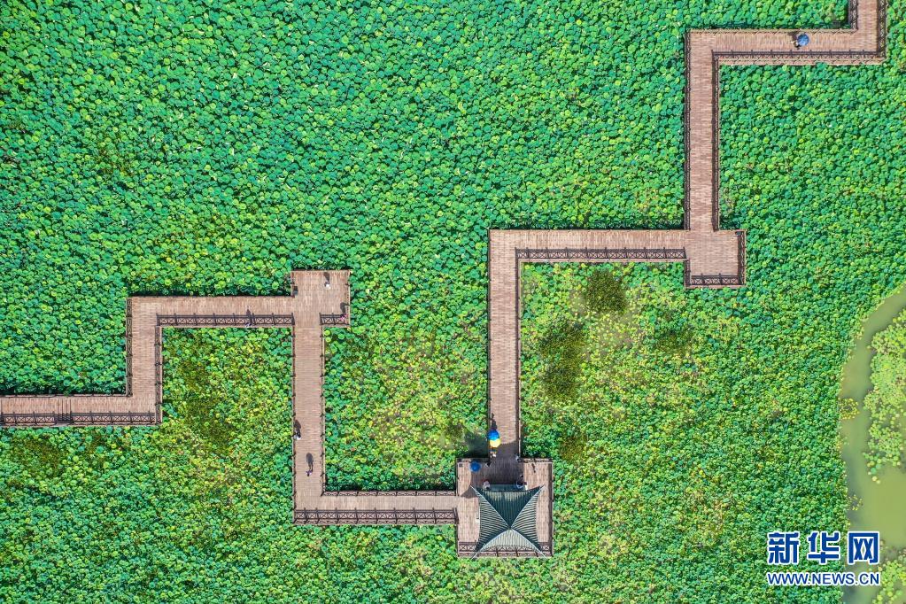 這是南寧市南湖內(nèi)的觀景棧道(6月14日攝,無人機照片)。新華社記者 徐海濤 攝
