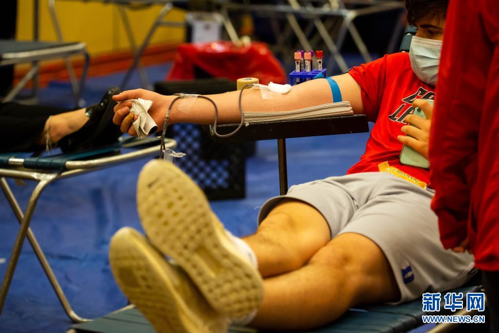 6月14日,在美國紐約州長島地區(qū)的尤寧代爾,獻(xiàn)血志愿者在美國紐約血液中心舉行的獻(xiàn)血活動(dòng)上獻(xiàn)血。
