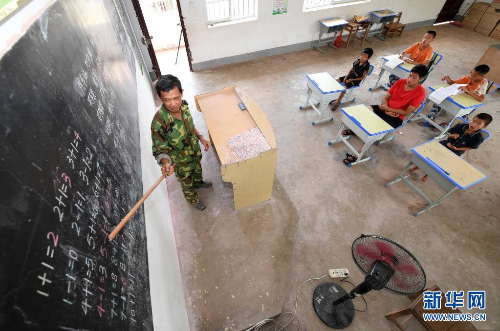 在廣西上思縣那琴鄉中心小學逢通村教學點,梁志雄老師在給學生上課(6月16日攝)。新華社記者 陸波岸 攝