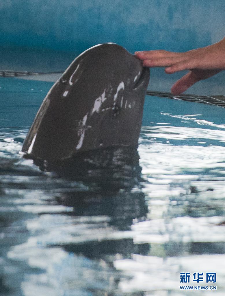 7月5日,中科院水生所白鱀豚館飼養員對長江江豚進行訓練。新華社記者肖藝九攝
