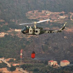 7月29日,黎巴嫩軍方直升機在阿卡爾省火災現場參與滅火行動。