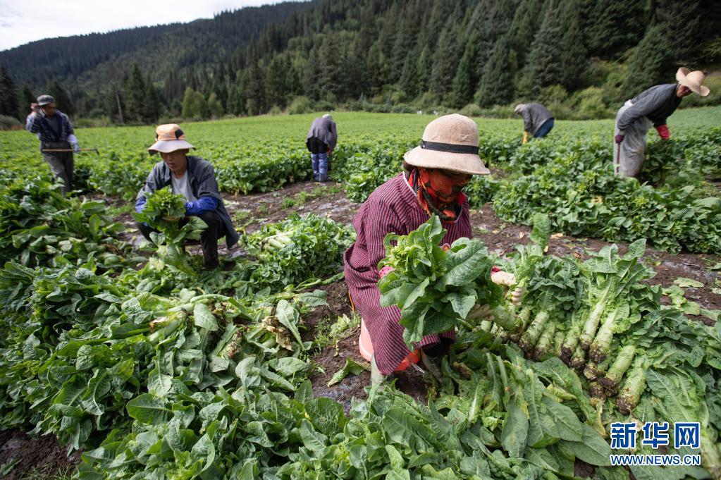 8月13日,在四川省阿壩藏族羌族自治州紅原縣刷經寺鎮加當村,當地群眾在收割高原萵筍。