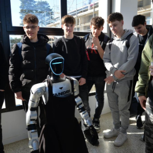 2月25日,在克罗地亚萨格勒布鲁杰尔·博什科维奇研究所,人们观看人形机器人“通卡”。