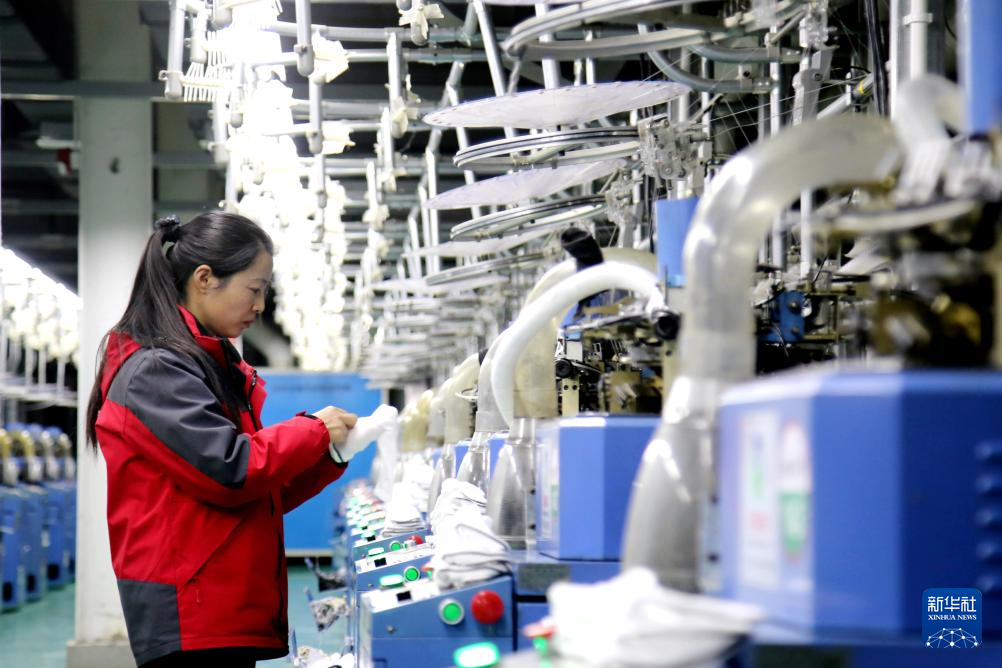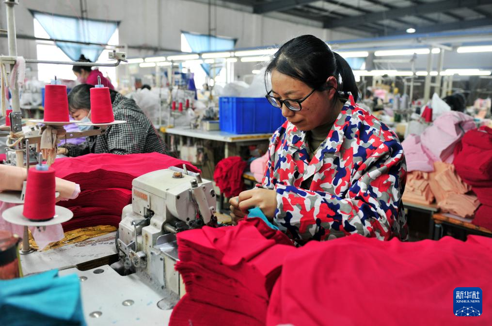 2月26日,工人在位于湖北省秭归县茅坪镇的湖北吉盛纺织科技股份有限公司成衣车间忙碌。