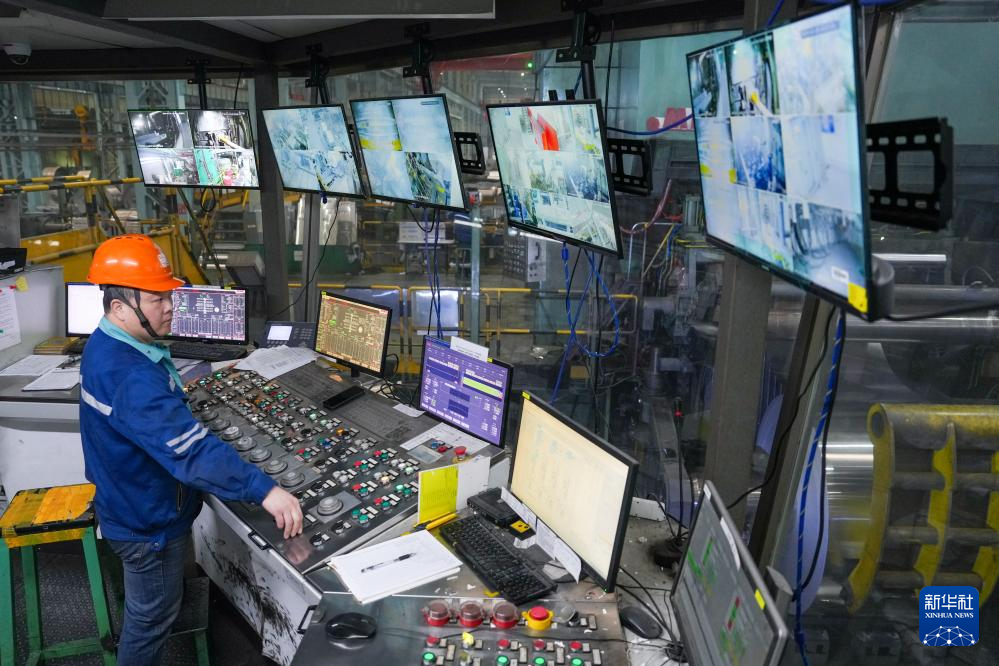 2月26日,在位于江苏省无锡市的银邦金属复合材料股份有限公司,工作人员在生产车间操作设备进行生产。