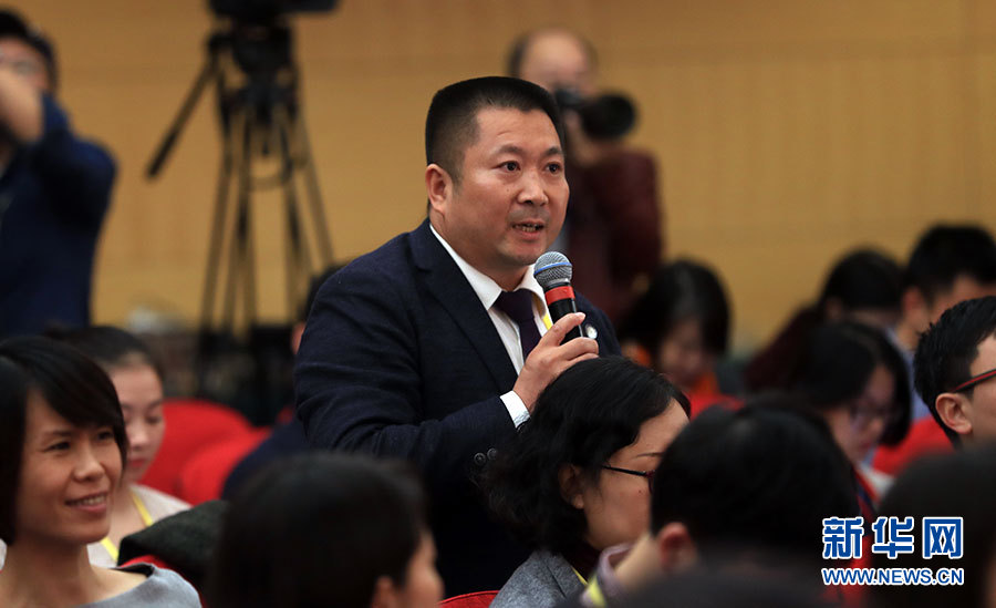 ??? 10月19日,十九大新聞中心舉辦集體采訪,邀請工信和通訊領域代表談走新型工業化道路。圖為香港經濟導報記者提問。新華網 郝廣鵬攝