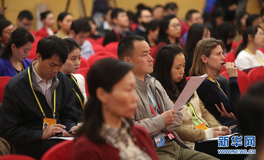 10月21日,十九大新聞中心舉辦集體采訪活動,主題為“農業科技創新”。圖為現場記者。新華網 郝廣鵬攝