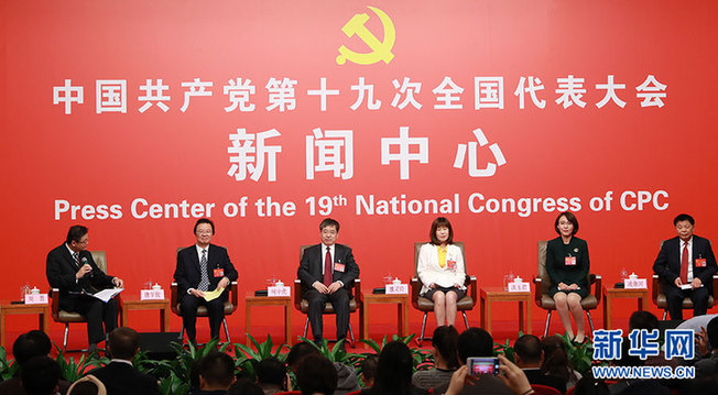 ???? 10月21日,十九大新聞中心舉辦集體采訪活動(dòng),主題為“農(nóng)業(yè)科技創(chuàng)新”。圖為集體采訪活動(dòng)現(xiàn)場。新華網(wǎng) 郝廣鵬攝
