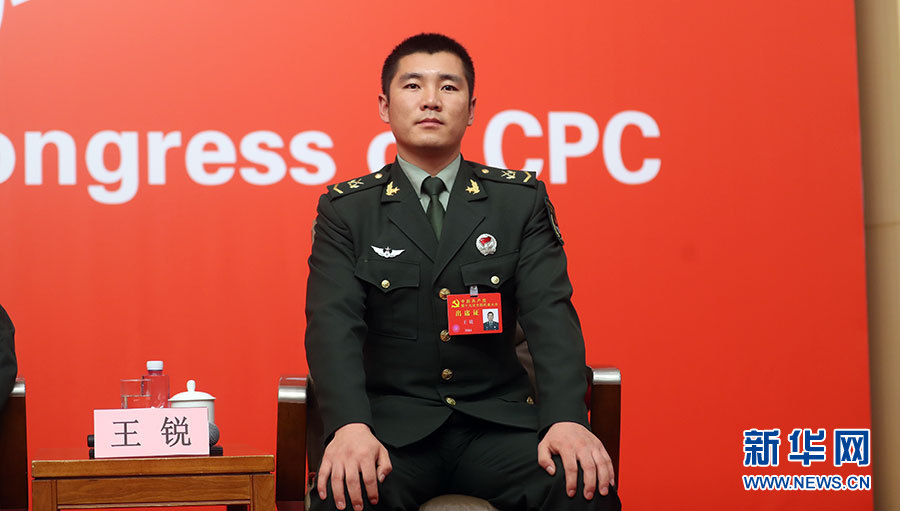 10月22日,十九大新聞中心在梅地亞中心二層新聞發布廳舉辦集體采訪活動,主題為“中國特色強軍之路邁出堅定步伐”。圖為陸軍第74集團軍某合成旅兩棲裝甲突擊車車長王銳。新華網 郝廣鵬攝