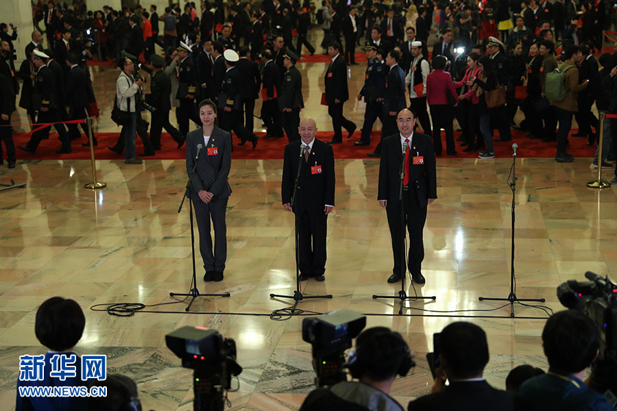 10月24日大會(huì)閉幕會(huì)后,人民大會(huì)堂舉辦“黨代表通道”第三場(chǎng)采訪活動(dòng)。圖為黨代表接受采訪。新華網(wǎng)記者 翟子赫 攝