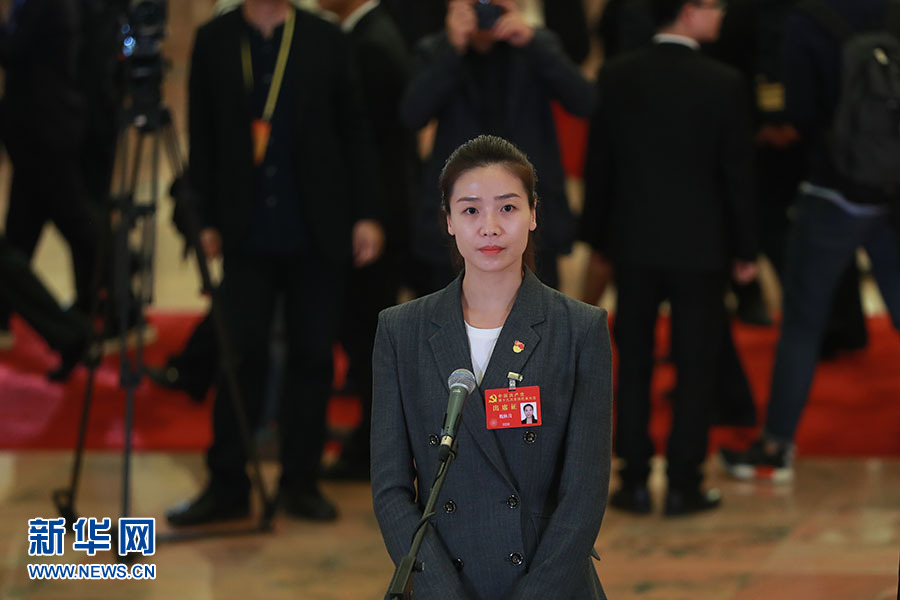 10月24日,人民大會堂舉辦“黨代表通道”第三場采訪活動。圖為魏秋月代表接受采訪。新華網記者 翟子赫 攝