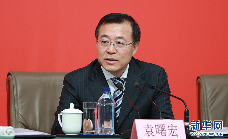 10月26日上午10:00,中國共產黨第十九次全國代表大會新聞發言人在梅地亞賓館二層新聞發布廳召開專題新聞發布會,請有關方面負責人解讀十九大報告,并回答記者關心的問題。圖為國務院法制辦公室黨組書記、副主任袁曙宏。新華網 翟子赫 攝