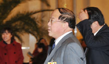 國(guó)土資源部部長(zhǎng)徐紹史進(jìn)入會(huì)場(chǎng)時(shí)向本網(wǎng)記者招手