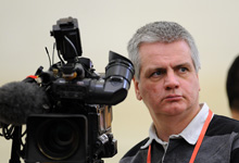 一名攝像記者在拍攝記者會