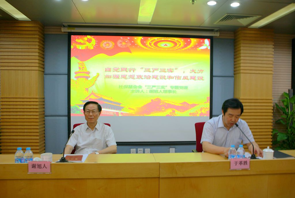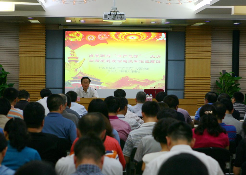 5月25日下午,全國社會保障基金理事會謝旭人理事長為全體干部職工講授了題為“自覺踐行三嚴(yán)三實(shí),大力加強(qiáng)思想政治建設(shè)和作風(fēng)建設(shè)”的專題黨課,同時(shí)對開展“三嚴(yán)三實(shí)”專題教育進(jìn)行了動員。于革勝副理事長主持會議,中央組織部干部四局張晨光同志應(yīng)邀參加。
