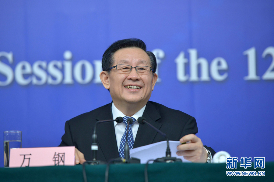 圖為萬鋼回答記者提問。新華網/中國政府網 郭小天 攝