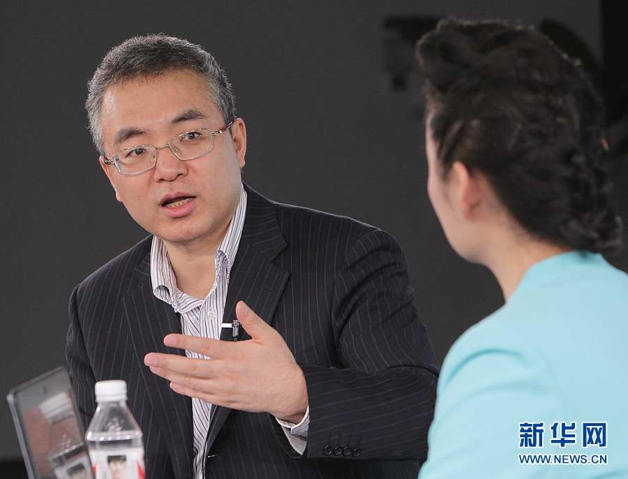 2015年3月13日,中國人民銀行金融研究所所長姚余棟做客新華網2015全國兩會特別訪談。圖為姚余棟解答主持人的問題。 新華網 郭 研 攝