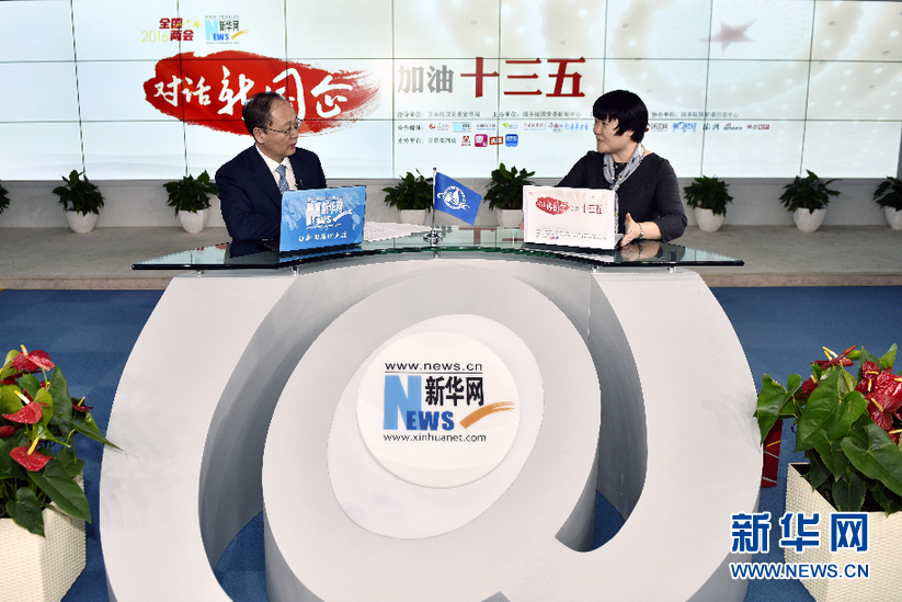2016年3月13日,全國政協委員,中國航天科工集團公司副總經理魏毅寅做客新華網兩會訪談直播間。圖為魏毅寅在訪談現場。新華網 付宇鵬 攝