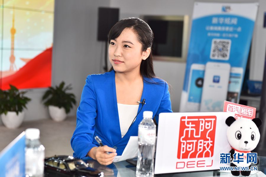2016年3月13日,最高人民檢察院辦公廳主任、新聞辦主任王松苗做客新華網兩會訪談直播間。圖為主持人田甜。新華網 付宇鵬 攝